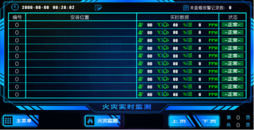 系统主机能够实时检测每个配电箱柜的工作状态, 显示各个配电箱柜的实时温度湿度或烟雾浓度等, 并可对每个灭火装置进行报警设置 、远程启动等操 作 。(远程操作需要输入密码: 3030, 防止误操作) |